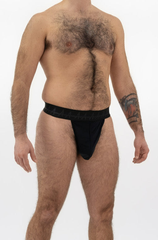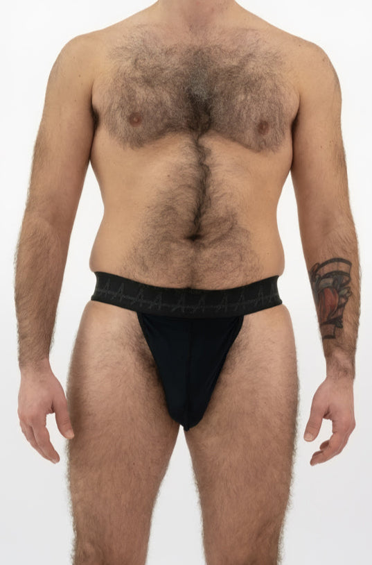 Introducing our French Cut Thong. With its high cut leg and bold cut, this thong not only flatters your figure, but also creates the illusion of longer legs. Made from comfortable fabric and featuring a thick waistband, it stays in place and sits high on the waist for a sexy and confident look. Elevate your lingerie collection with this exclusive piece.